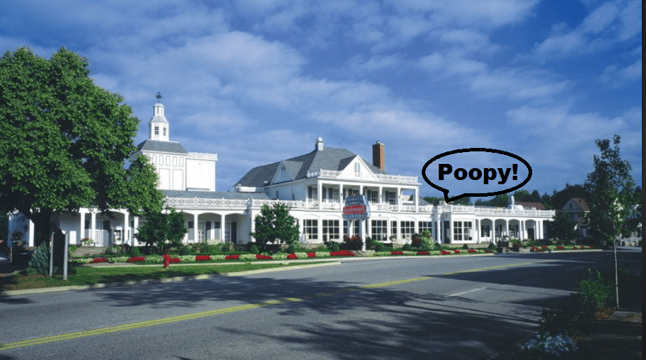 The thoroughly unamused voice from the occupied stall growled back: “I am NOT poopy!”