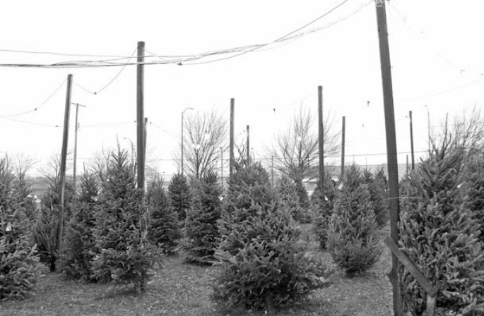 Today, however, a large portion of the parking lot is now closed off – for FUCKING CHRISTMAS TREES!
