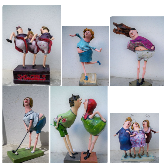 Holik works in paper mache; and I love the humor and joy represented in her round ladies.