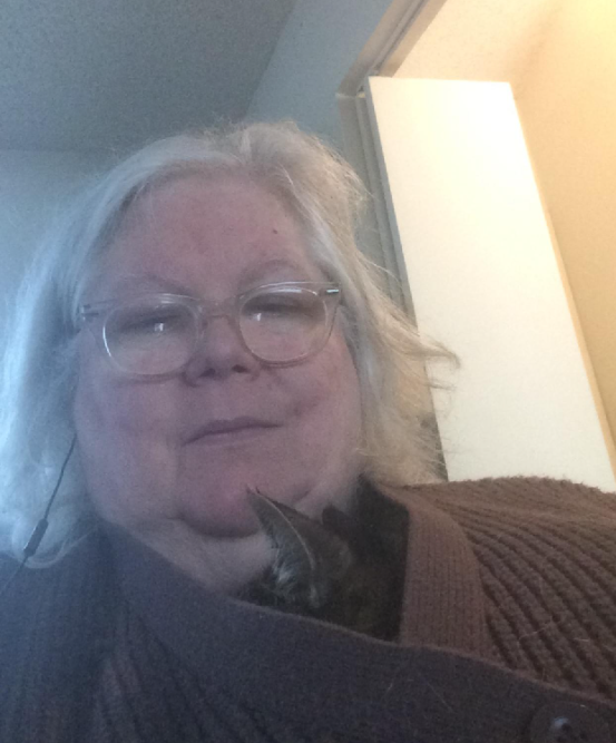 This is how I work, with a snuggled cat and an inordinate amount of (very unkempt) hair (waiting patiently for the salons to reopen).