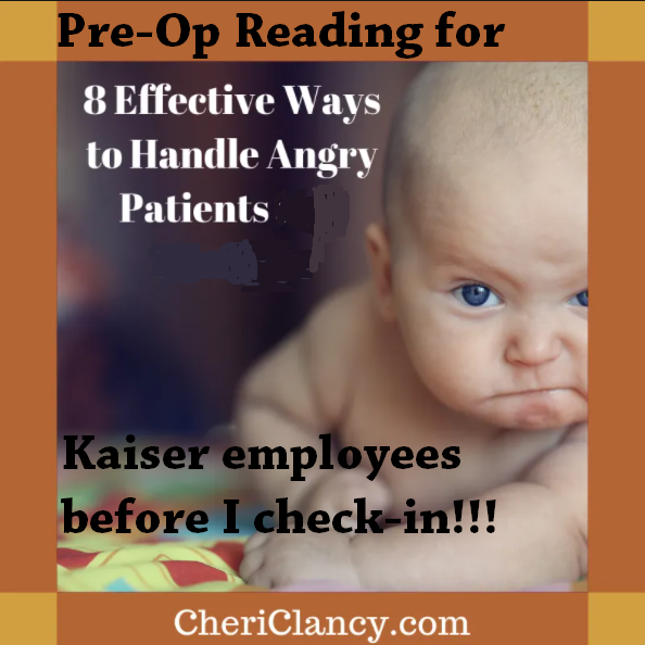 I am not happy. I let them know. I also point out this is a lousy way to prep me for a surgery that could get canceled because of elevated blood pressure, since I am currently off all of my blood pressure medicine as part of my pre-op preparation.