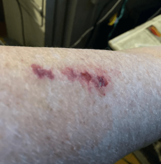 It’s that bruise-y, ripped skin-y injury that you can’t quite figure out how it happened; and old people tend to have them on any body part where their dry fragile old people skin has come in contact with the world.