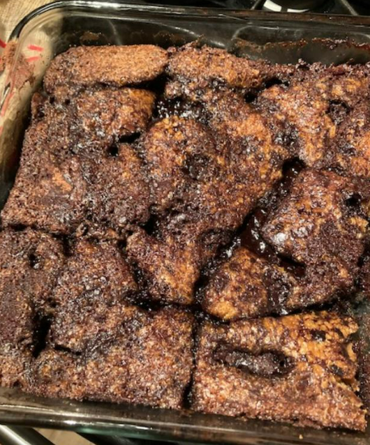 Easy as any cobbler recipe – but comes out tasting like a brownie!