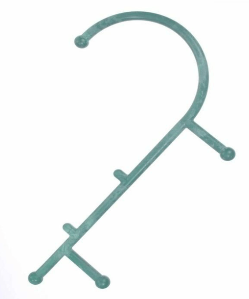 You can use the hook part to reach parts of your back and shoulder not usually within reach and find the tender bits (of which I have plenty) and push and prod the knots that have accumulated – relaxing the muscles. You can use the other knobbly bits the same way, but that hook part is the star of the show.