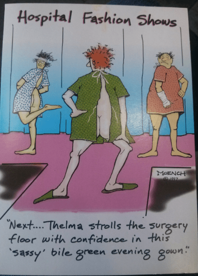 The good news is they are getting ready to discharge her, and nosey-Parker me gets to ask all the questions I have bubbling away in my fat old lady brain. The discharge is fairly painless and pretty quick for a hospital discharge. Personally, I believe it’s because once I showed up the staff decided, “Oh, fuck no, we don’t want to have to deal with this one”, and got my girl out the door as quickly as possible.