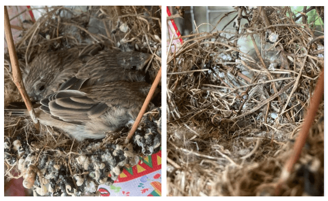 This makes me happy because I knew there had been three eggs. I was afraid one egg either didn’t hatch or got tossed out of the nest.