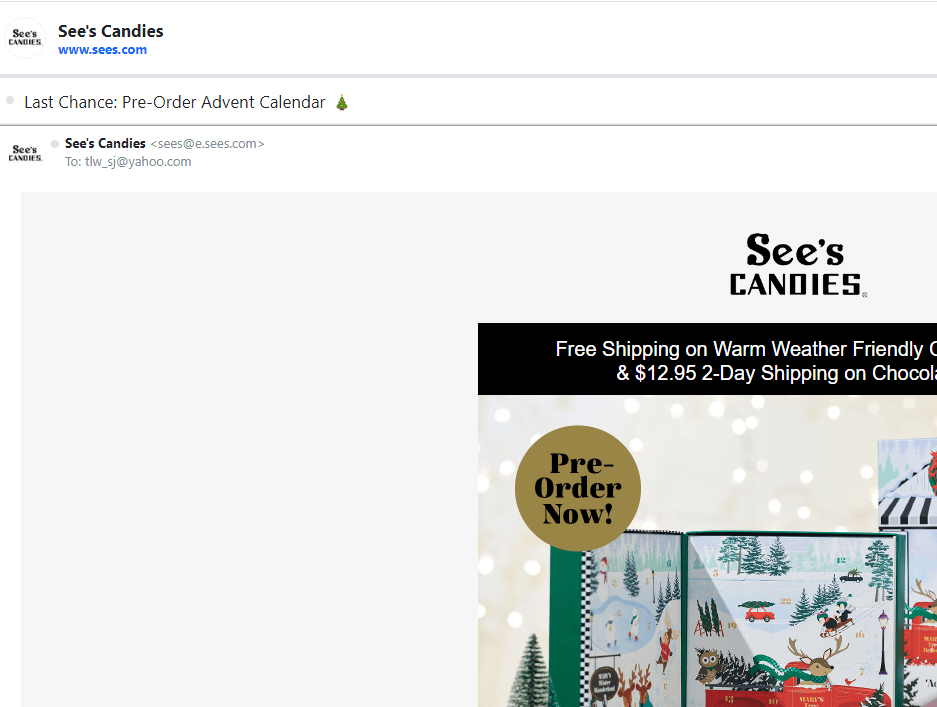 But before we start in on the people I had to actually telephone (and you know how uncomfortable I am about phone calls, so there’s that), let’s look at something that arrived in my inbox today from See’s Candies.