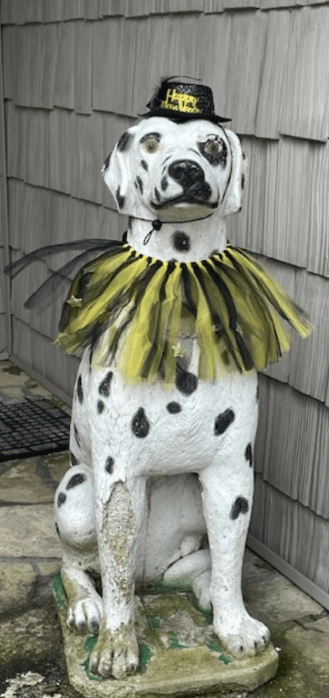 THIS FAT OLD LADY’S ME MONDAY – BETTER LATE THAN NEVER tanteterri / January 9, 2024 Okay, I didn’t change up my ce-ment dog until a week after New Year’s but I (finally) did it. I think next year, I’m gonna have to get him a champagne glass to balance on his nose. Share this: Click to share on X (Opens in new window) X Click to share on Facebook (Opens in new window) Facebook Like Loading...