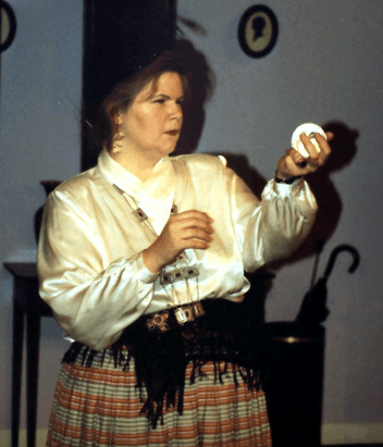 (Photo is me playing Madame Arcati in Blythe Spirit, lo’ these many years ago.)