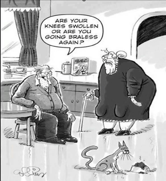 So what’s a fat old lady to do? Right now, I have two options. Gel injections or total knee replacement.