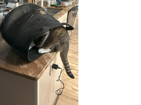 When we got Moose he was already declawed (something we would never do to a cat, but there you go), and I was under the impression that Moose could not jump from the floor to the kitchen island countertop. The two clawed cats can jump from the floor to the chairs to the countertop. I thought those chairs were a little too tall for a clawless cat to safely manage.