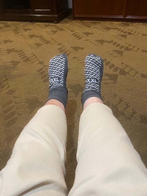 They’re comfy and non-slip and free – sort of (I don’t want to know what insurance pays for these).